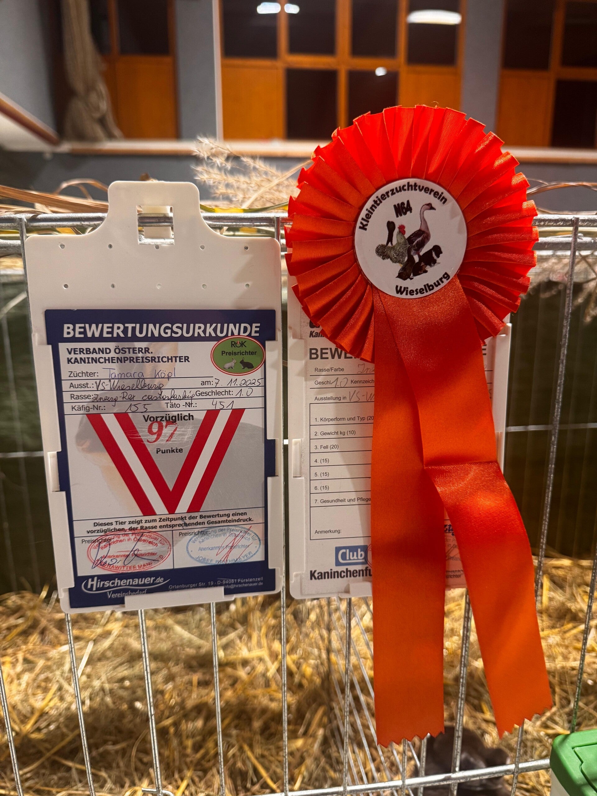 Nach unserer Vereinsschau vom Kleintierzuchtverein N64 Wieselburg darf ich mich riesig freuen: 3 meiner Tiere wurden mit sensationellen 97 Punkten bewertet !